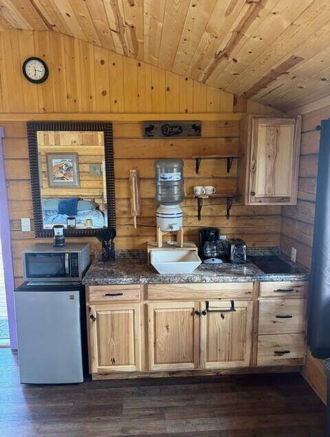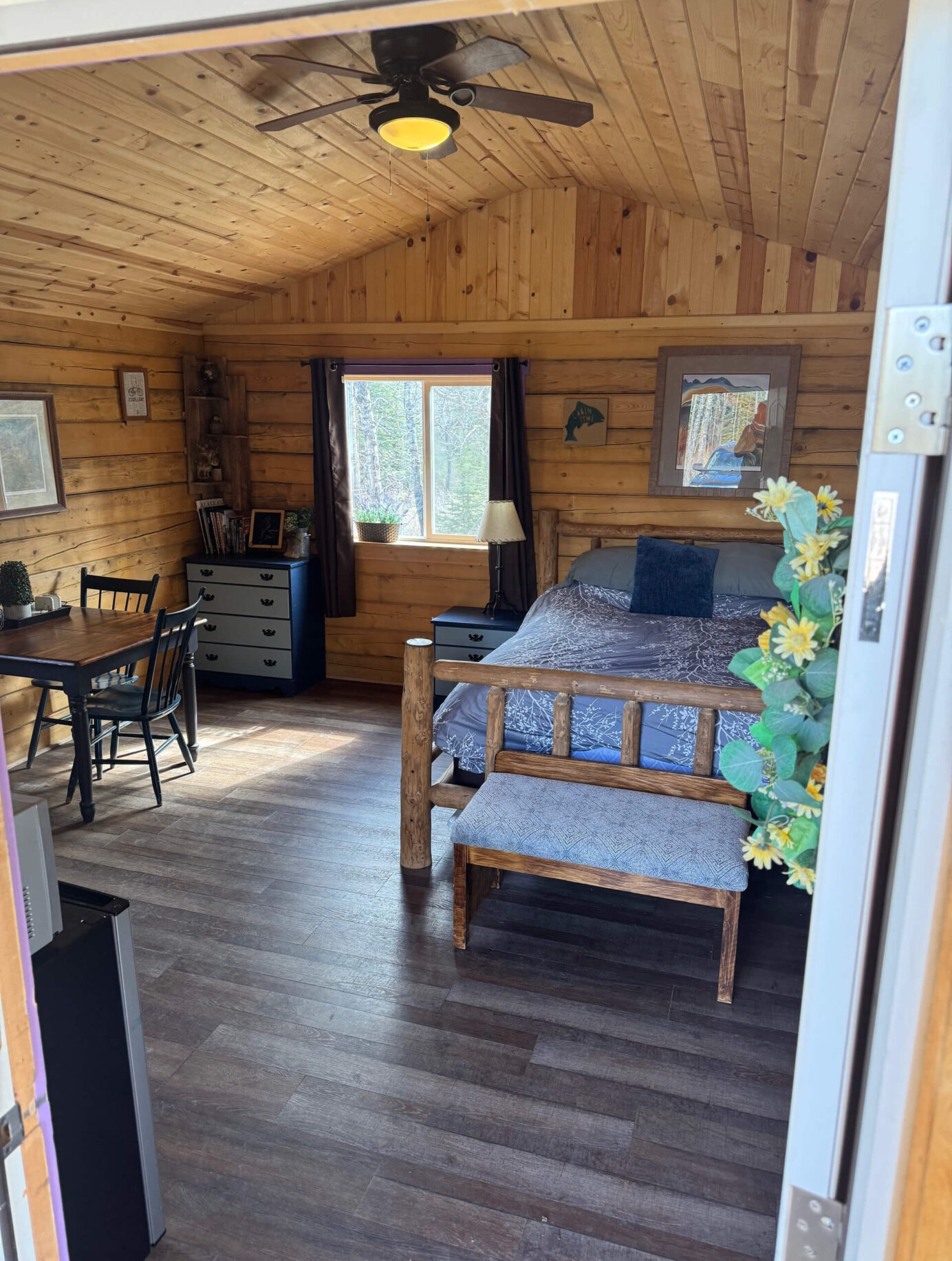 Our Healy Dry Cabins are located right outside of Healy, Alaska. Only 14 miles from the Denali National Park entrance, this cabin offers a full-sized bed, private outhouse, hot plate, fridge, grill, fire pit area, and great views! Although it is a dry cabin (no running water), water is provided for drinking and other needs. Enjoy a peaceful stay in these cozy cabins!